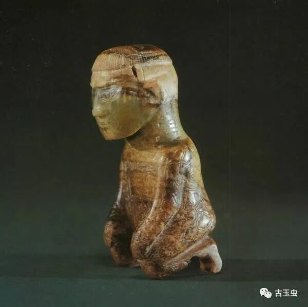 ↑商代晚期,跽坐人形玉雕