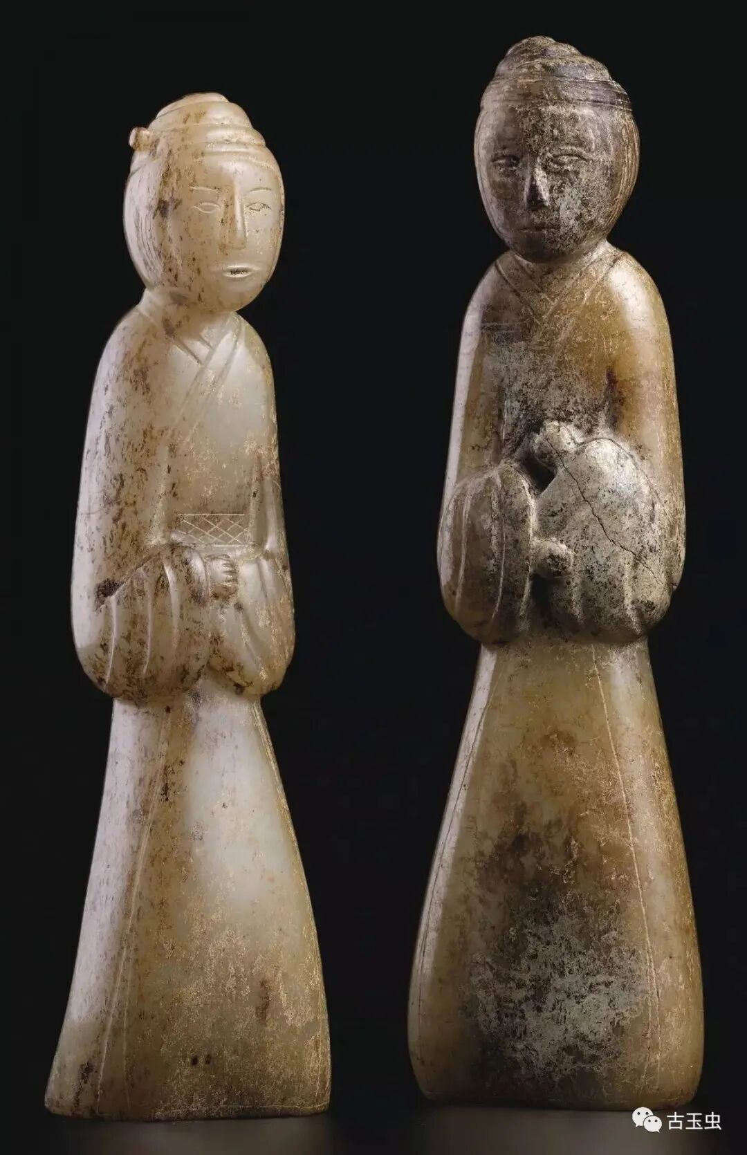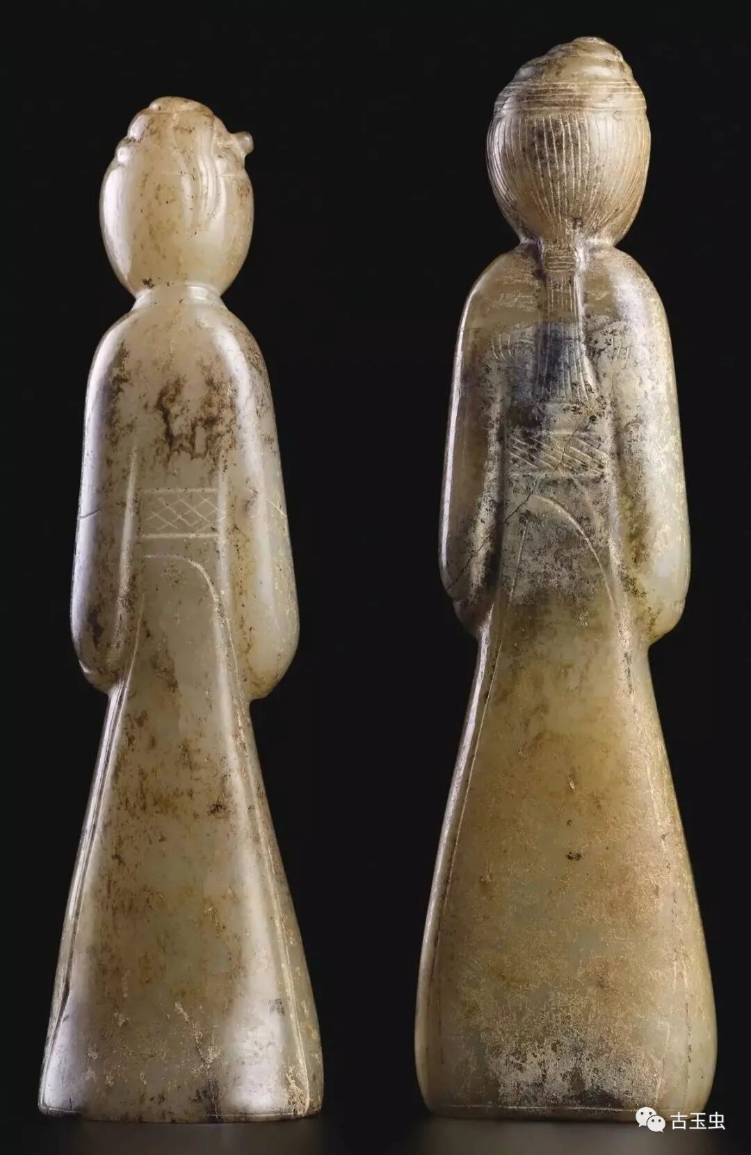 汉 左侧玉舞人高10.5厘米、右侧玉舞人高10.2厘米、