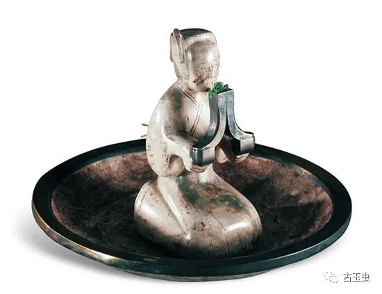 汉 跽坐吏玉灯、盘 高8.5厘米 604.8万元 2009年北京翰海秋拍