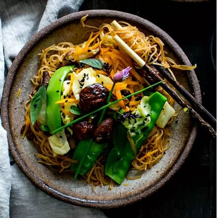 荷兰豆、胡萝卜、蘑菇、生菜、细面、酱油、糖、辣椒片、海盐