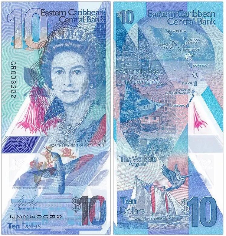 ▲东加勒比10元塑料钞(采用Safeguard基材)