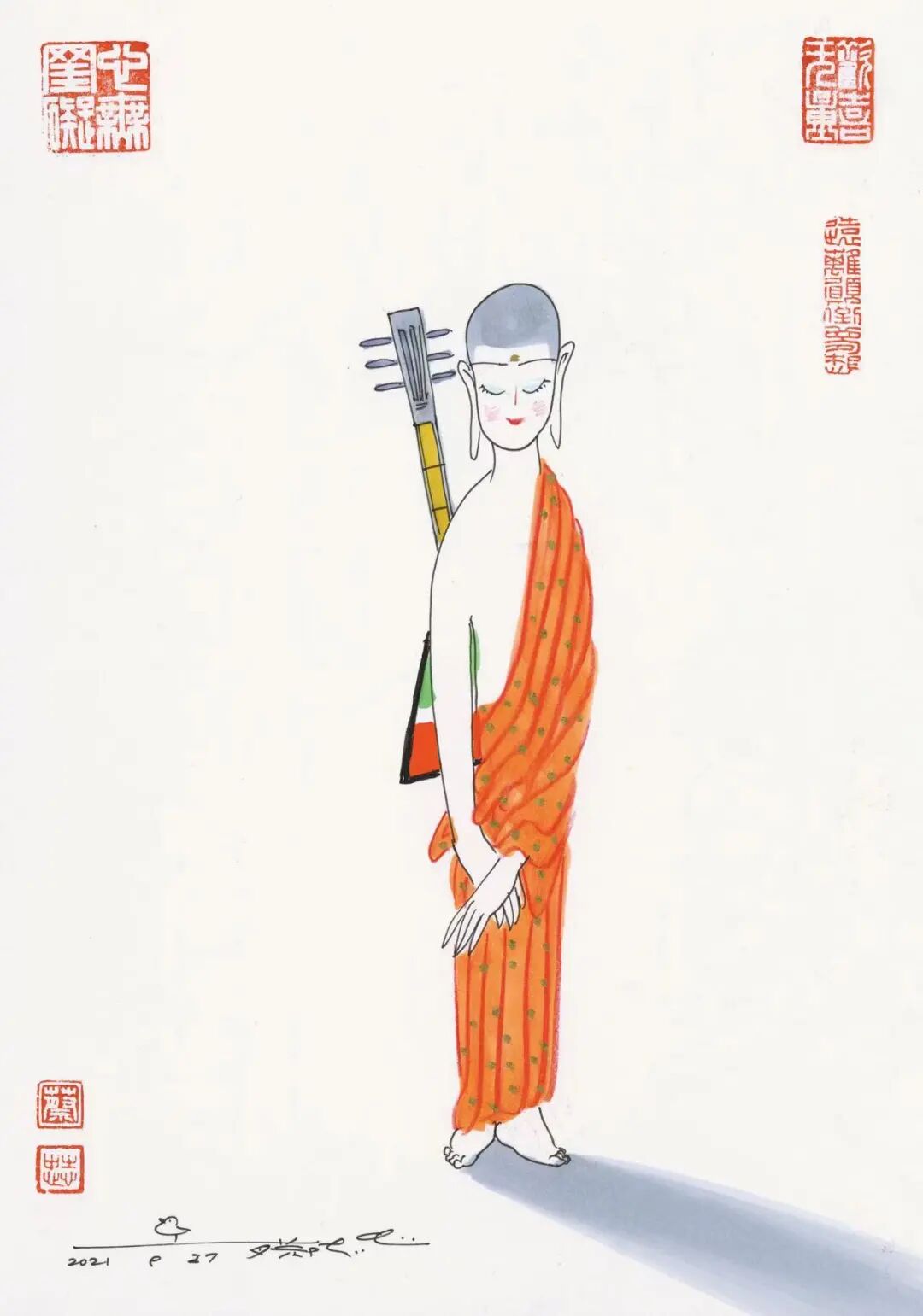 蔡志忠的绘画,单线平涂,用笔流畅,线条简练,画面整体干净、清爽,寥寥几笔就能勾勒出传神的动态和悠远的意境。