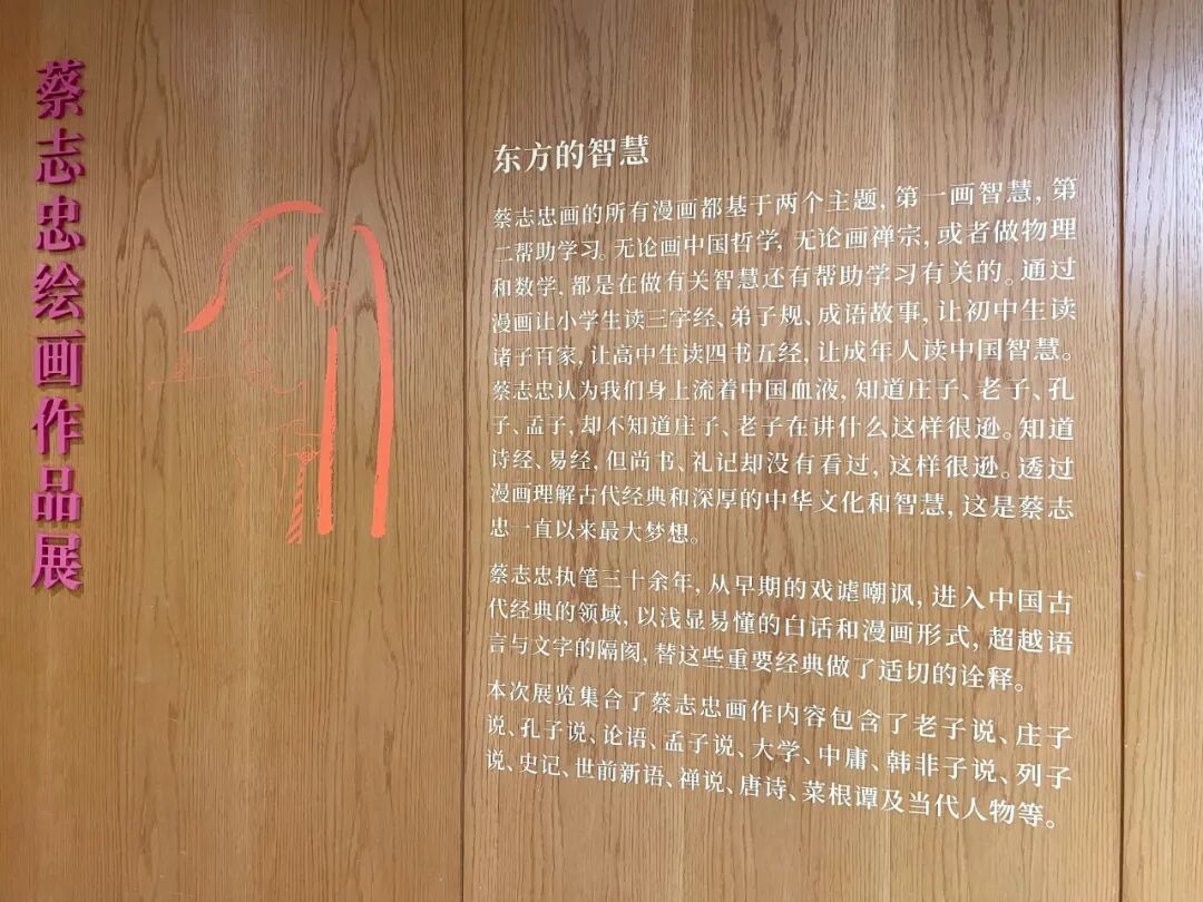 “蔡志忠绘画作品展”将于2022年2月8日至18日在嘉德艺术中心三层中庭空间,展出精彩作品34幅,内容包含《老子说》《庄子说》《孔子说》《论语》《孟子说》等题材。以漫画的形式,深入浅出地为中国优秀传统经典做适切的诠释。透过漫画理解古代经典,解读深厚的中华文化和智慧。