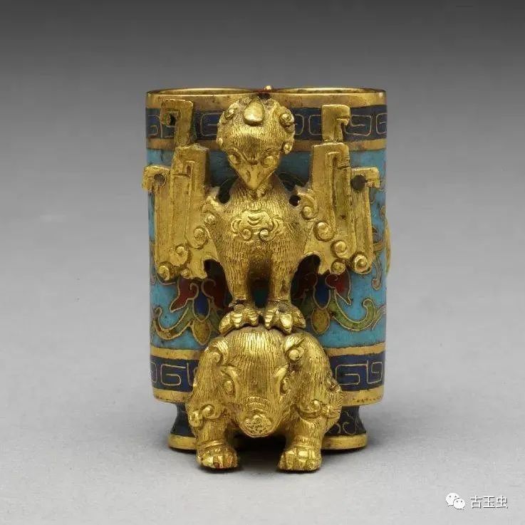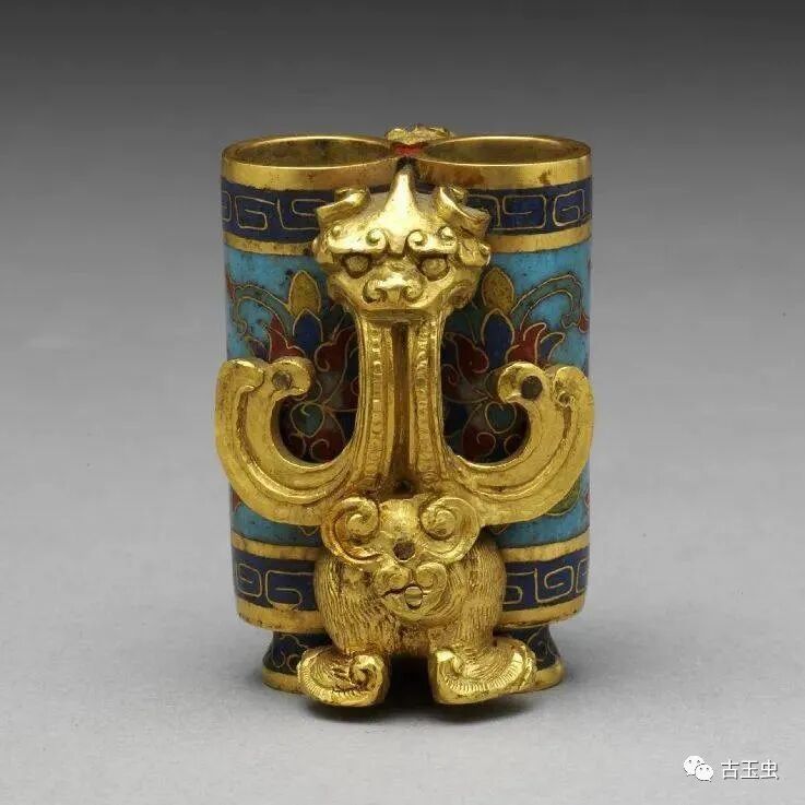 清乾隆 掐丝珐琅饕餮纹合巹杯