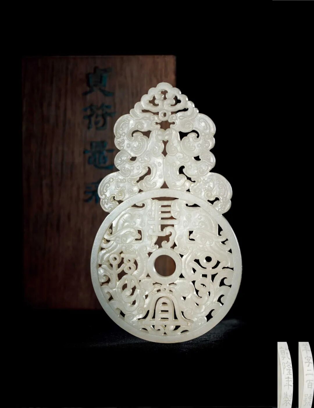 估价:6,800,000 - 8,800,000 人民币本品包含一件乾隆朝宫廷制作的仿古玉器,即“白玉镂雕夔龙夔凤纹‘长宜子孙’璧”。“白玉镂雕夔龙夔凤纹‘长宜子孙’璧”,配有乾隆御笔亲题的书画、钤印,并经郑重装帧的玉册页十分难得。北京保利 2021「深圳」精品拍卖会 凝沚—诸家雅蓄中国古董珍玩估价:8,000,000 - 12,000,000人民币
