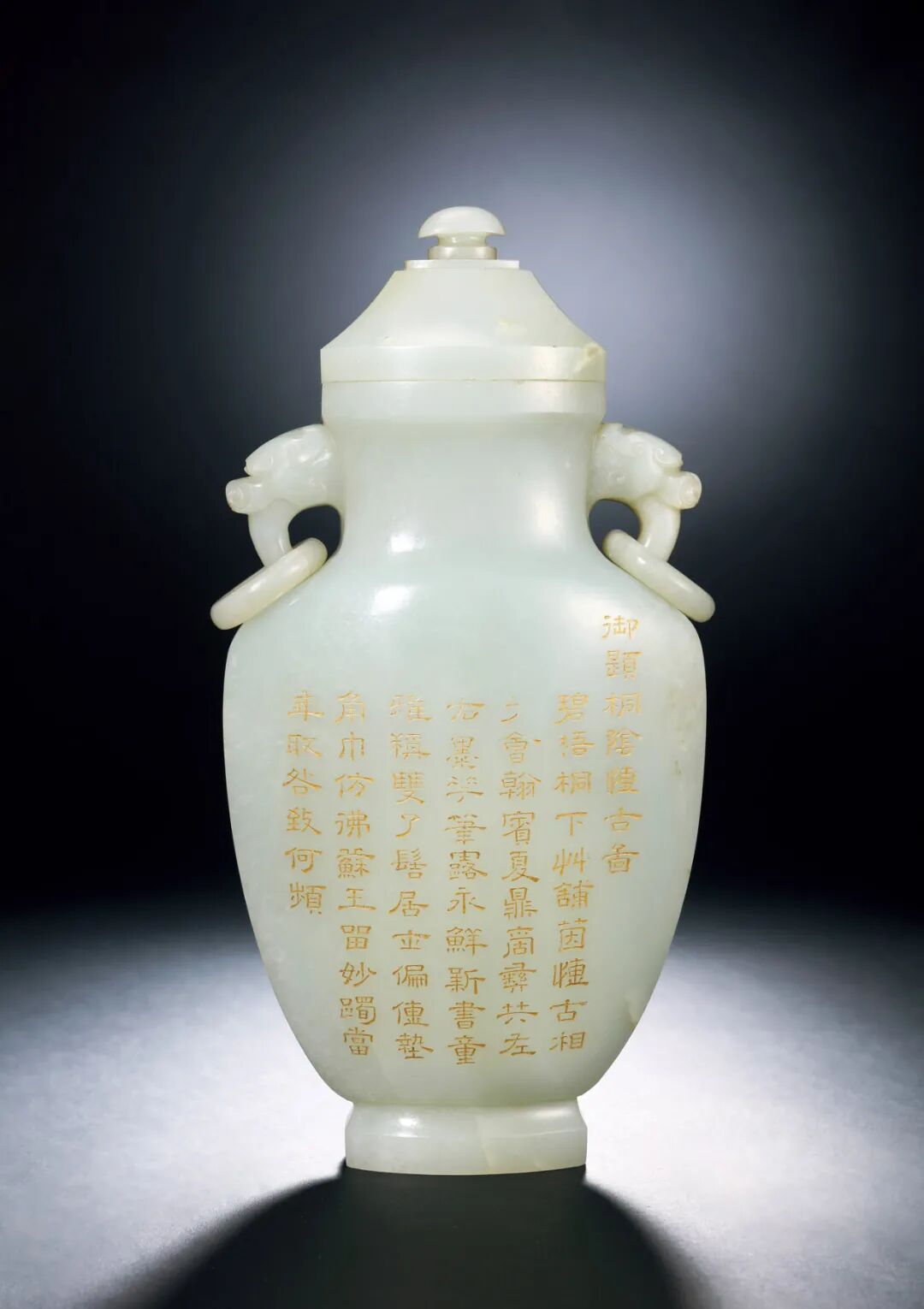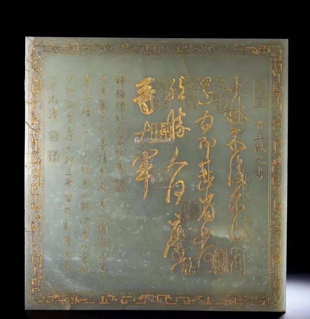清乾隆五十四年(1789年) 御制白玉蹲龙钮「八征耄念之宝」「嚮用五福」宝玺 (一组)华艺国际(北京)2021春季拍卖会 大美——古代宫廷器物夜场根据《清宫内务府造办处活计档案》上载,此组宝玺制作于乾隆五十四年,是为庆祝来年乾隆八旬万寿而制,这场万寿庆典异常隆重,从两年前就开始筹备。可以说,“八征耄念之宝”组印的刻制既是对八十万寿的纪念,也是乾隆帝对自己的戒勉,更是对清代万世昌盛的希冀。藉玺儆惕子孙,希冀子孙效仿自己,敬天命,念庶征,怀万民,以长治,保久安。香港苏富比 2021 年春季拍卖会 中国艺术珍品专场估价:25,000,000 - 30,000,000 港元成交价:43,430,000港元(约合 3661 万人民币)此谥宝是明代洪熙帝用以追谥母亲 - 永乐仁孝文皇后而下令雕造,从 2004 年的 353 万港元,到如今的 4343 万港元,17 年间升值约 11 倍。清乾隆 御制青白玉填金王献之《中秋帖》暨《洛神赋十三行》插屏北京保利 2021 春季拍卖会 禹贡 Ⅰ—乾隆御制缂丝兰亭图帖与古稀天子的天朝盛世估价:20,000,000 - 30,000,000 人民币