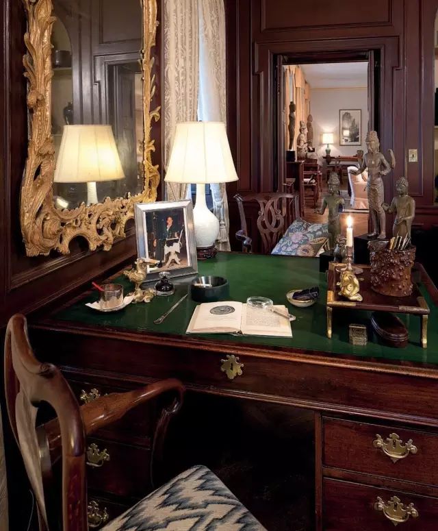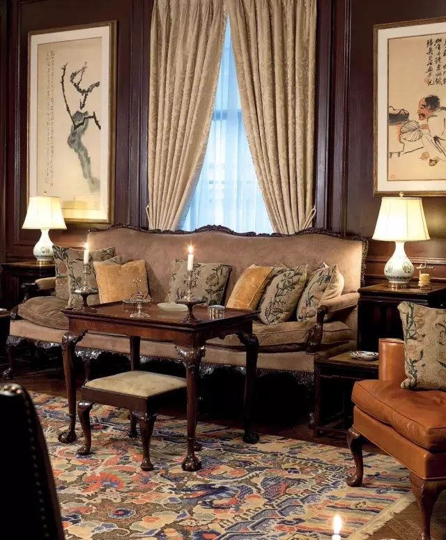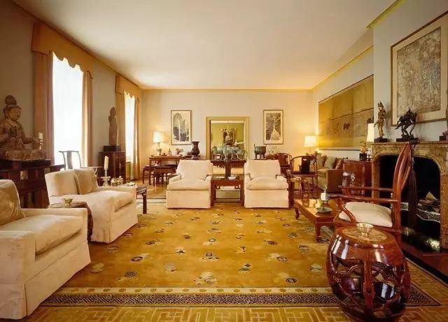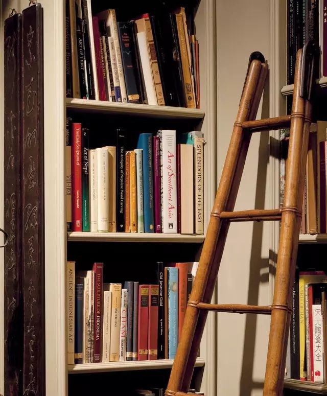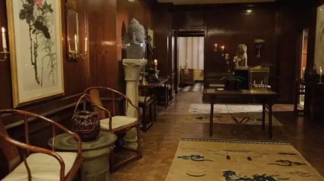 安思远晚上还会在图中这个英式图书室待客,那里有来自欧洲的博物馆长、身负护送艺术品重任的日本策展人、年轻中国学者,还有衣装华丽的朋友、邻居、客户穿梭出入……