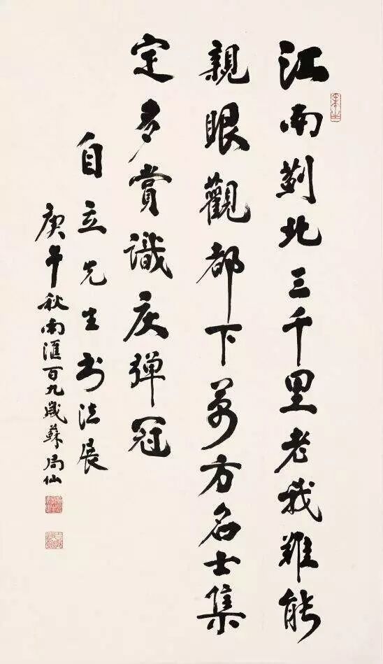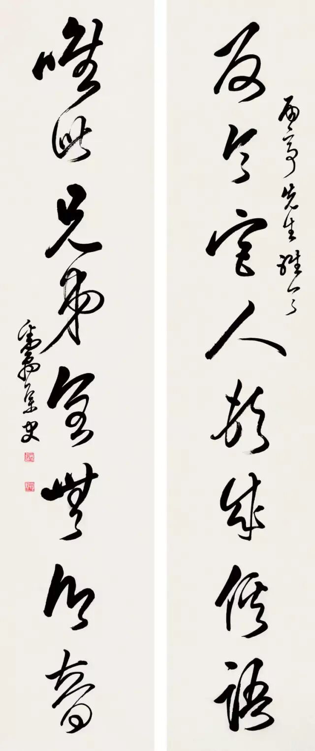 注:林散之,号江上老人、左耳、聋叟,又署林散耳。自幼年起学习书画,曾师从范培开、张粟庵、黄宾虹等人。汉魏唐宋元明清皆习之不厌,遍临百家,遂成其独特书法特色。散之老人草书别有趣意,下笔不事雕琢,斩钉截铁,笔势如龙腾虎跃,生生有气。用墨则枯湿浓淡,婉约其间,有如美人姿态总可相宜,凸现出摄人心弦的艺术魅力。