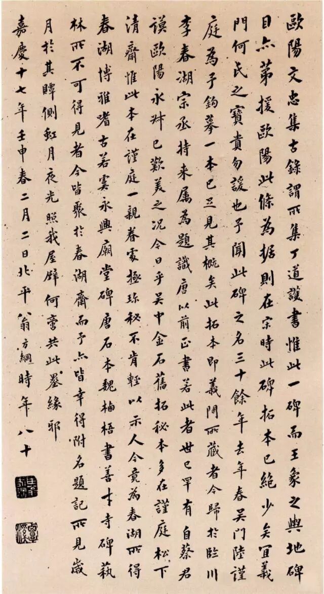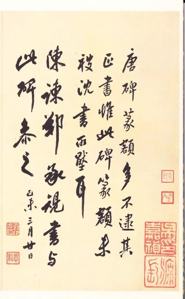注:李文田,字畬光、仲约,号若农、芍农。书法北魏,于隋碑用力最多。尝大论《兰亭序》非羲之文非羲之书,此论一出,撼动书林,争议一时,后因论据不足而止。数十年后,高二适、郭沫若也有兰亭之争,因历史原因也作了了,未得其果。我认为,现在研究《兰亭序》书文是否为羲之所作实在是没有实际意义。首先,在我们的观念中我们已把《兰亭序》和王羲之紧紧相连在一起了,如果《兰亭序》不在王羲之名下或者是王羲之从来就没有书写过《兰亭序》,那末我们的书法情结会产生一个什么样的转变。其二,我们目前所见的《兰亭序》墨迹本来就不是王羲之所为,如果用一个非标的参照系作为研究模范,得出来的结论又如何让人信服呢。拙论且存。