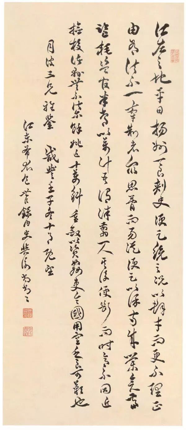 注:王铎,字觉斯。博古好学,精于诗文书画。草书更是天然自成,狂扫媚流,有怀素以来第一人之称。有墨迹多种传世。明亡仕清,故后人多以贰臣诟之。