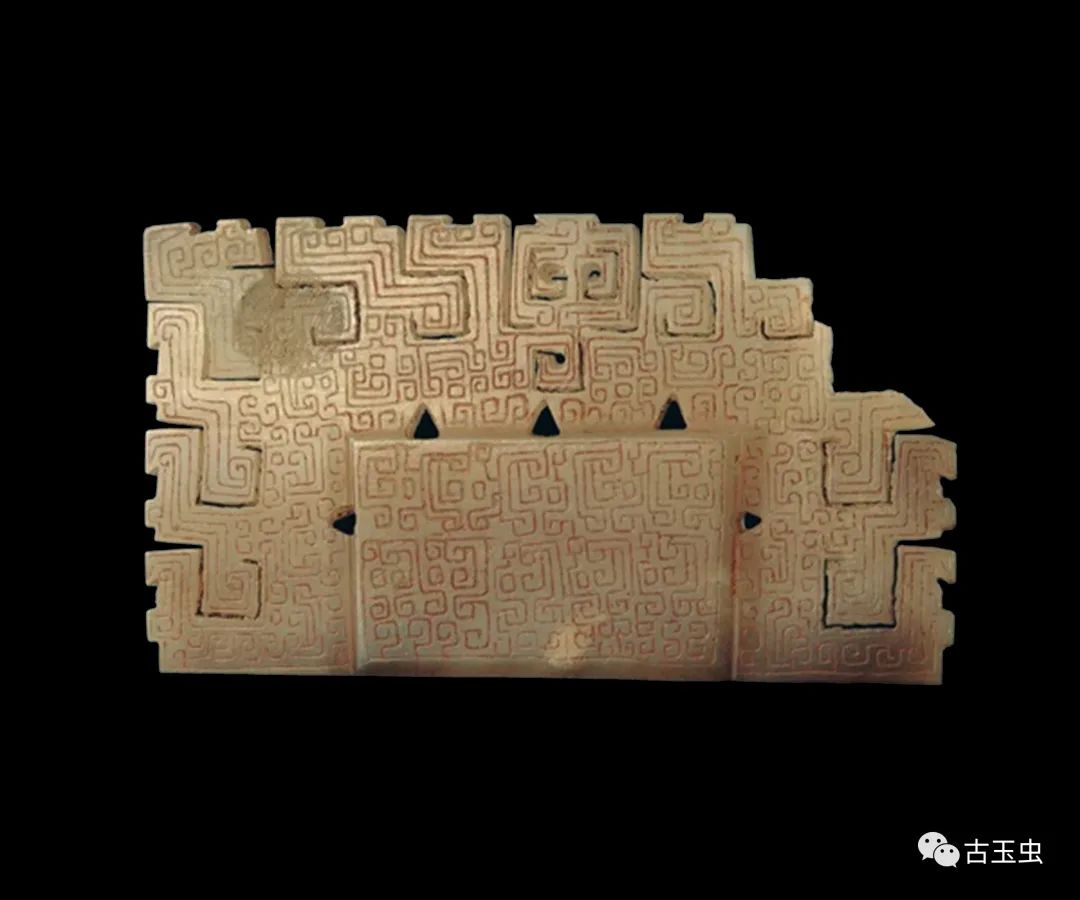 上图为陕西凤翔秦公一号大墓出土的春秋晚期部分龙纹亚字形玉佩