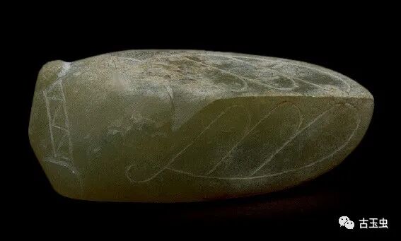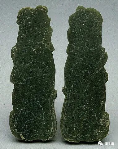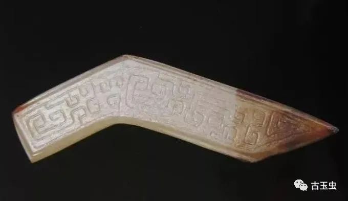 上图为陕西凤翔秦公一号大墓出土的春秋晚期龙首纹尖顶等腰双足形玉佩