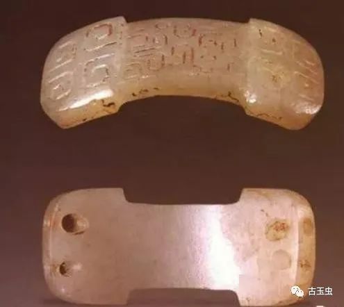 上图为陕西凤翔秦公一号大墓出土的春秋晚期龙首纹梯形白玉牌
