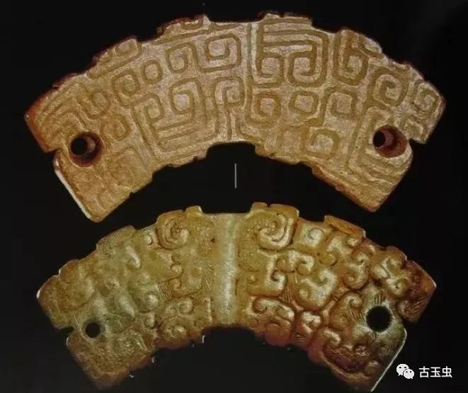 上图为陕西凤翔秦公一号大墓出土的春秋晚期玉璜,两面纹样风格不同,一面为秦国风格的阴刻龙首纹,另一面是楚国风格的浅浮雕蟠虺纹