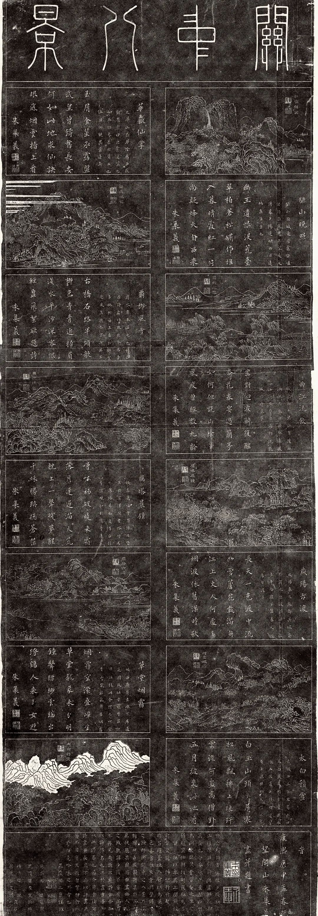 山岳名胜图受表现空间的约限,则往往采用分景图绘的方式,绘制方式灵活,能全面地展示不同季节、不同时辰、不同气候、不同区域的景物情况,这就是古代常以“八景图”“十景图”来表现某地景观的用意。