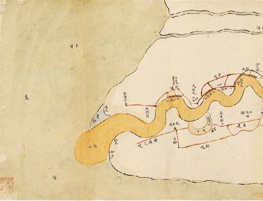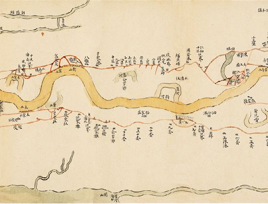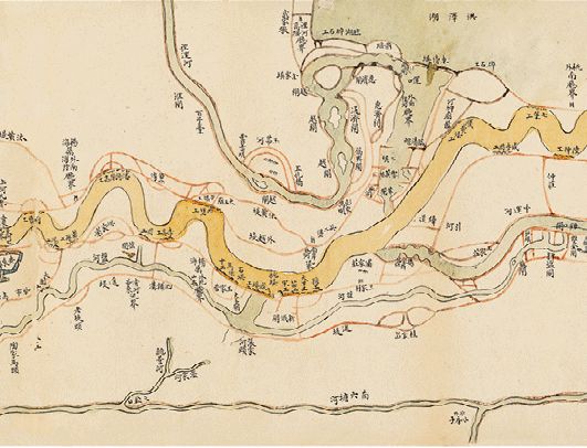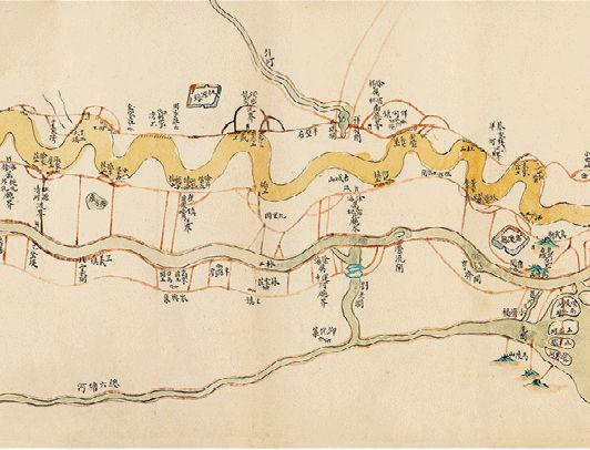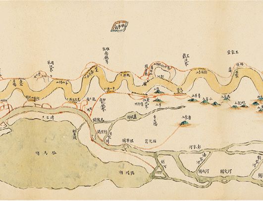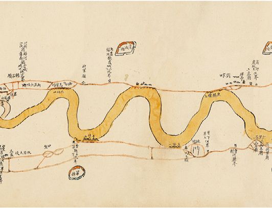 川图卷。分为长江、黄河、运河、湖泊及其他川图等五大类别。中国古代曾以江、淮、河、济为“四渎”,代表全国四条独流入海的水系,历代曾经分别绘制表现这四条江河的舆图,可是很少能够流传下来。其中长江、黄河不仅是中国最重要的江河水道,在历史进程中承担过重要的角色,而且因其下游河道屡有变迁,水患频仍,故而无论在河工水利工程方面,还是军事上的防守,均有极其重要的社会意义。中国也是世界上最早开凿人工运河的国家,京杭大运河是古代中国贯穿南北的重要人工河道,对维护国家统一、南北水运交通、经济互补、文化交流做出了巨大贡献。这些重要的江河运道不仅有经济意义、社会意义,更成为有象征意义的政治文化符号。