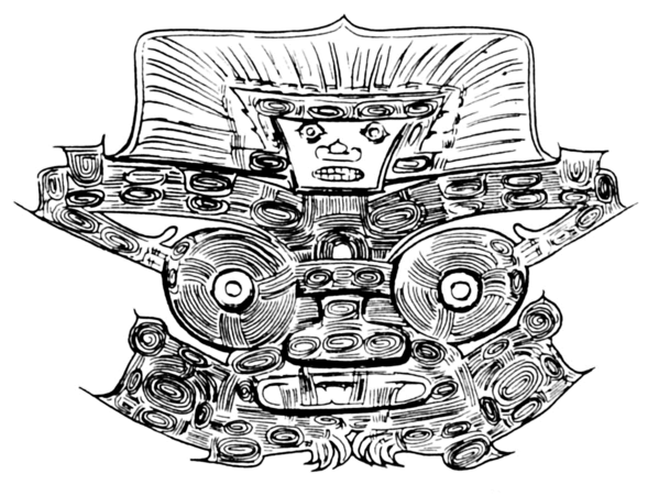陕西神木石峁遗址是中国近年的重大考古发现。笔者留意到,在石峁古城墙中作为废物利用的刻纹条石上,石雕人面像有羽冠大耳巨眼阔嘴的形象,与三星堆几件顶置羽冠的青铜面具形神相近,区别仅仅是材质不同,再一次证明了三星堆青铜面具的奇异形象并非无本之木。小巧的玉人面可以随身携带,随时发挥功能——面具可以遮己真容,避免魔鬼找上门来祸害自己;凶相面具有驱除厉鬼的用意,笑貌面具则有取悦上苍先祖之意。这种风俗,至今在西藏、东北及一些少数民族地区巫术及傩戏中遗存,川剧中的变脸、京昆戏里的脸谱,都应该是其孑遗。一些不宜佩戴的重大型青铜、木雕人面,先民平时专门置放于神庙、社坛等场所,作祭献、膜拜、祈禳用或供郊祀时的巡游。石峁先民将其玛雅式地雕刻在大型建筑的装饰性条石上,则是中国古文化中的首见。