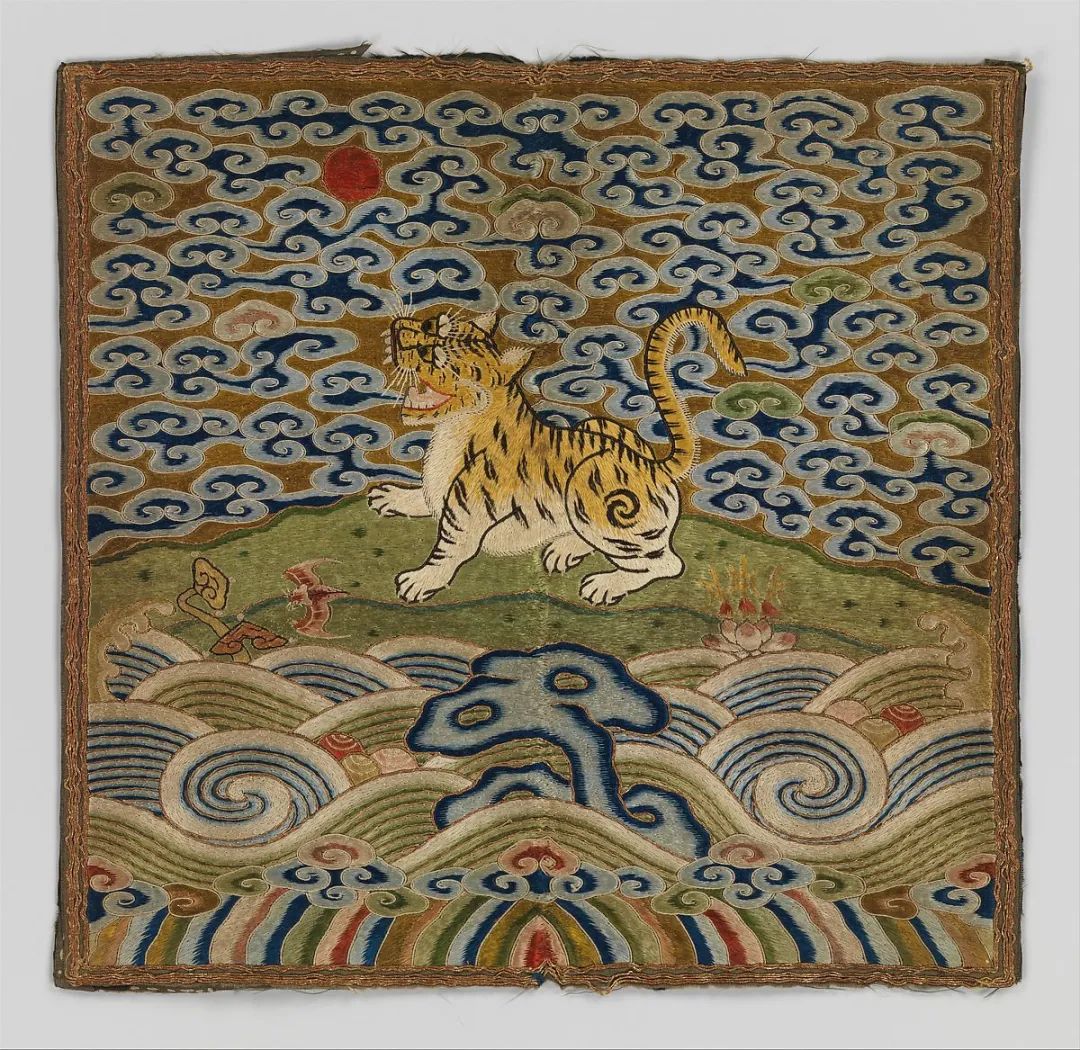 与想象中的“龙”不同,虎是一种实际存在的猛兽,道家将虎形象与龙进行捆绑,符合了封建专制主义皇权统治的需要。君王都称为“天子”,君王是龙,文臣武将皆为虎,虎的地位在“龙”之下。封建君王敬虎为神,祈借神威,以保社稷平安。再说,虎的勇猛与力量,能代表战斗力,壮军威,故在历史传承中大都以保护神或者战斗神的面目出现,甚至连为封建统治者培养选拔高级人才的国子监,也有个“虎闱”的别名。在冷兵器作战的时代,军事将领的营幕称为“虎帐”“虎幄”,军中禁地称为“白虎堂”。《史记》记有“窃符救赵”的故事,发兵符节称为“虎符”“虎节”;遮护营垒的障碍物称“虎落”或“虎路”;强弩的一种称“虎蹲弩”,明朝时还将一种形体短粗的火炮称“虎蹲炮”,等等。至于以猛虎的形象装饰各种兵器和装具,更是不胜枚举。