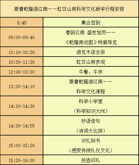 苏州博物馆西馆正在举办“春到江南 盛世姑苏——《乾隆南巡图》特展”,为此,我们特别推出“跟着乾隆游江南——虹饮山房科举文化研学”活动。