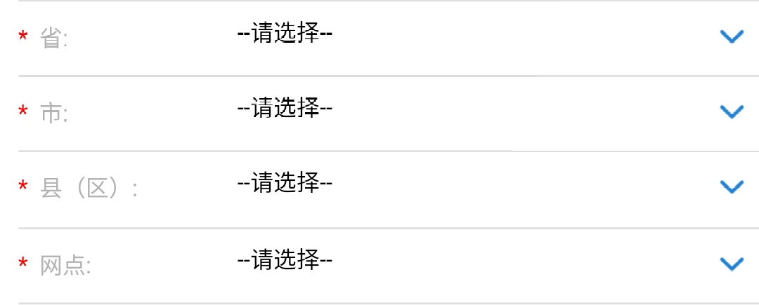 第二步:选择自己所在的省、市、县、以及具体网点。