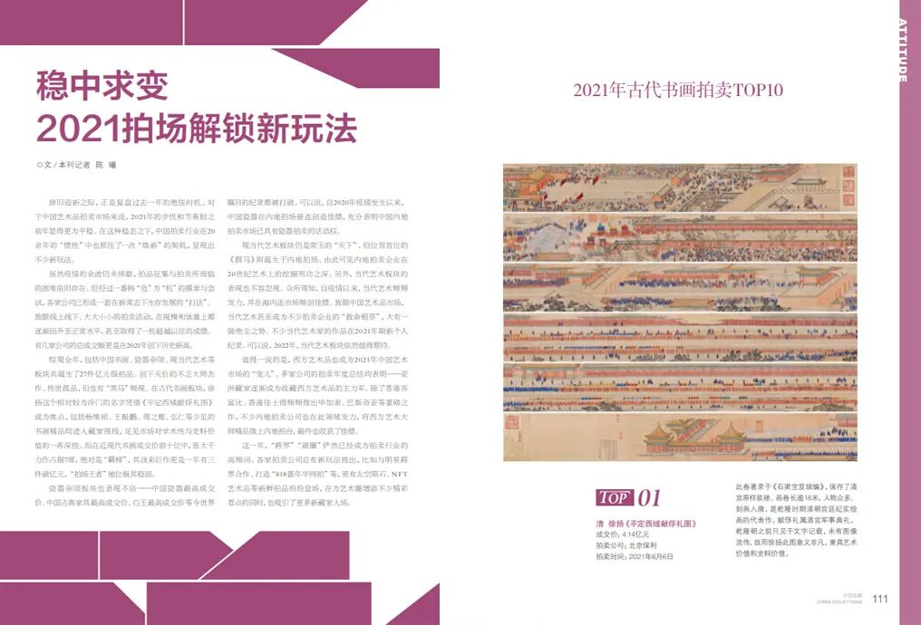 对于中国艺术品拍卖市场来说,2021年的步伐和节奏较之前年显得更为平稳。在这种稳态之下,中国拍卖行业在20余年的“惯性”中也抓住了一次“焕新”的契机,呈现出不少新玩法。本期,我们将通过对这些新玩法的解锁与回归,一窥拍场未来风向。