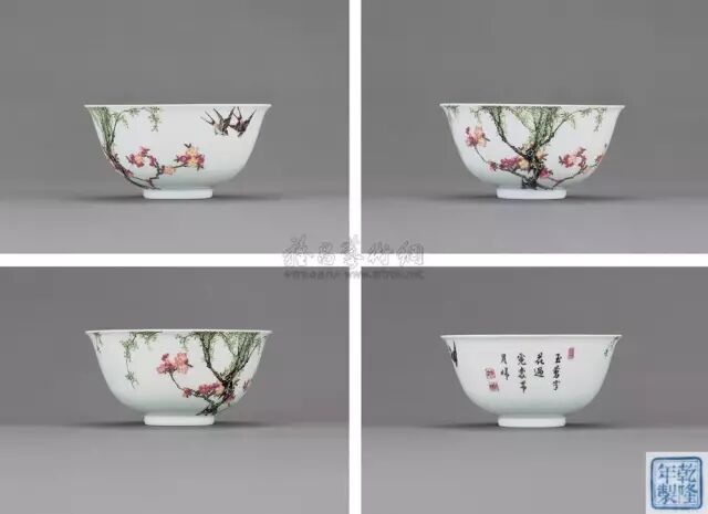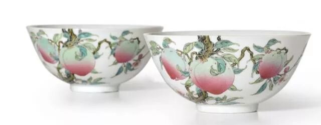 清雍正 粉彩过枝福寿双全盌 (一对)