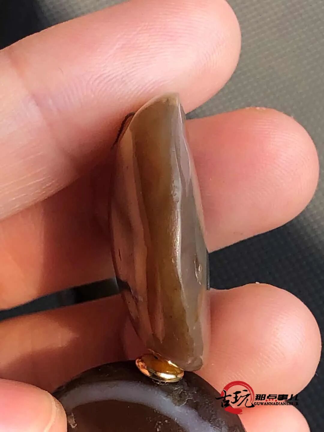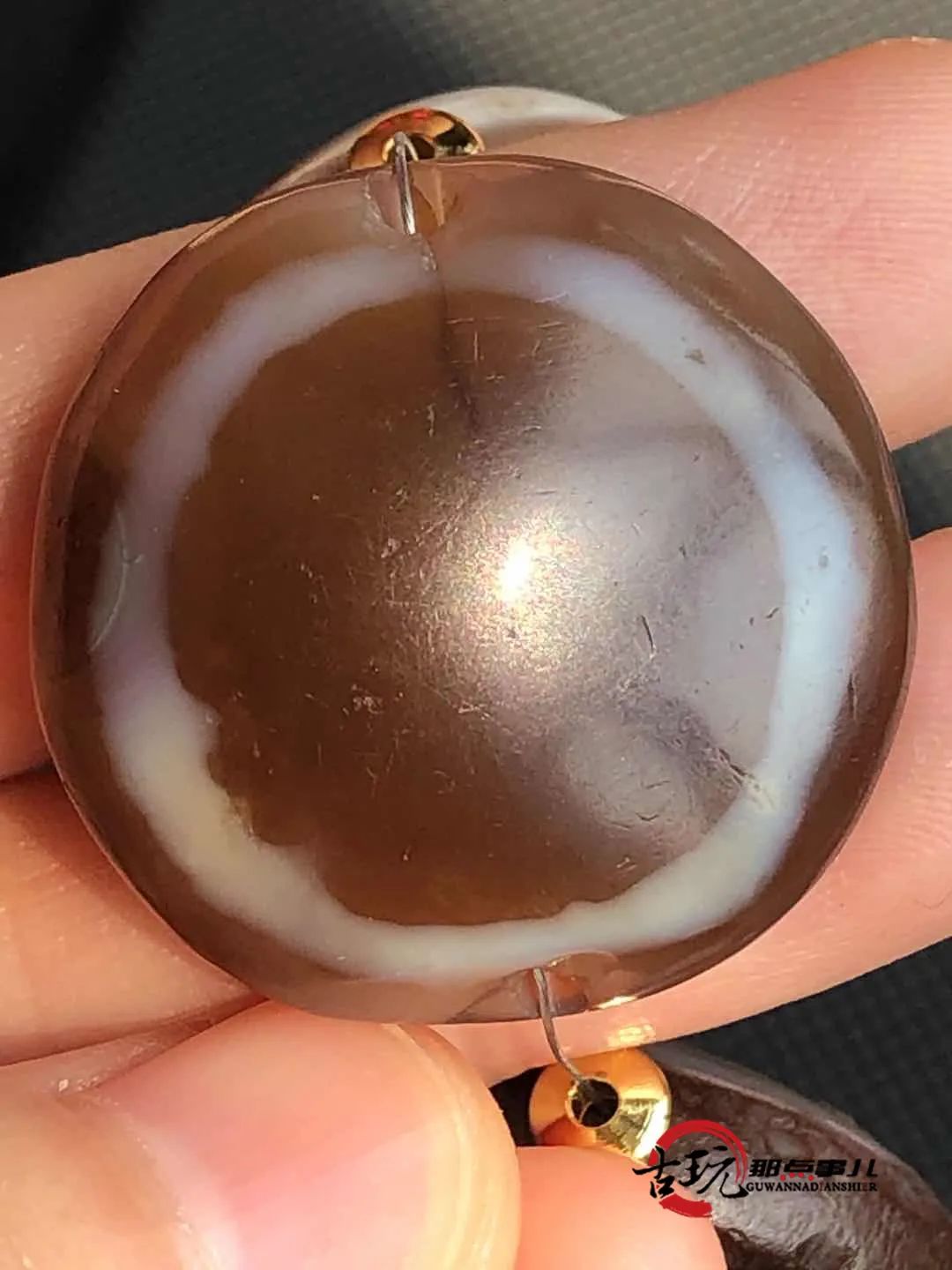 【古玩那点事儿出品】圆板形千年镶蚀马眼板珠(俗称:羊眼板珠)
