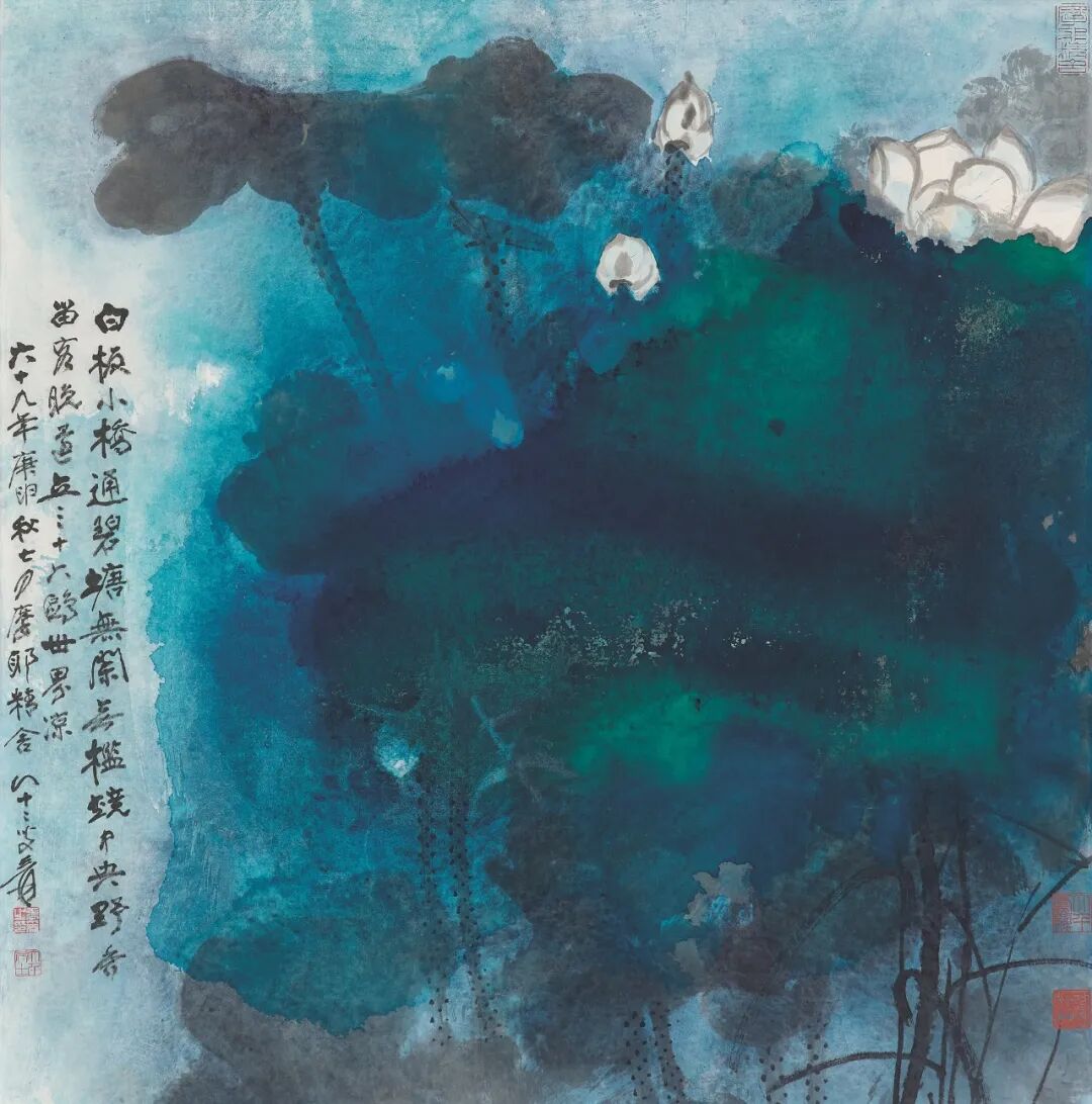 “中国近现代及当代书画” 拍卖则汇聚了近现代书画巨擘及当代水墨艺术家之耀眼佳构,为本次秋季拍卖添上一道闪烁光彩。除了领军之作张大千《云山居隐》之外,另有一系列融合了中西绘画艺术形式,并开创中国绘画新风貌的艺术大师林风眠、吴冠中的精美作品。此外,本场亮点还有奉文堂旧藏齐白石名迹佳作,比利时东西轩旧藏张大千于1960年代所绘的泼墨山水《烟云放棹》及《墨荷》,以及来自日本私人收藏,结合吴昌硕及日本书道大师日下部鸣鹤的《花卉书法屏风》。而当代水墨方面,更集结了李华弌、刘国松等先锋巨擘,与香港1970年代当代水墨先锋吕寿琨及才女画家方召麐等的非凡佳作。