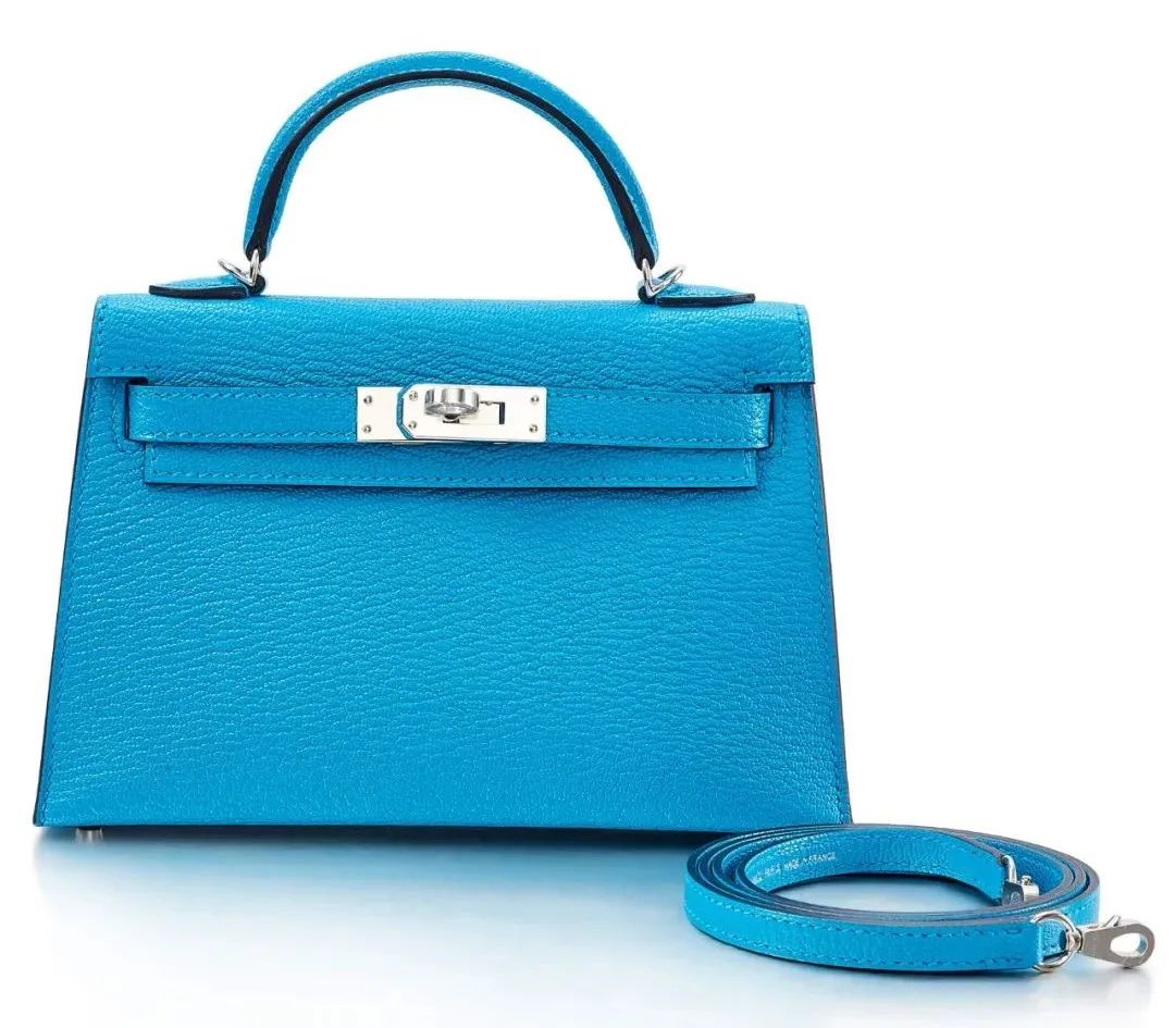 爱马仕 Frida 亮蓝色山羊皮 Sellier 外缝迷你凯莉包二代