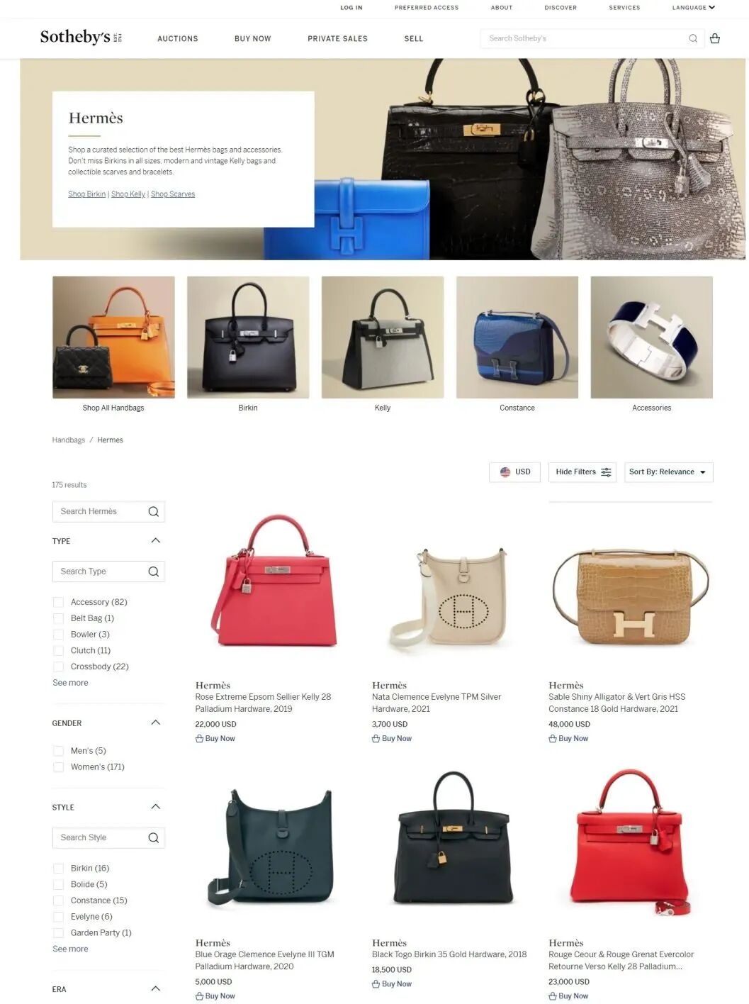 在苏富比「Buy Now」即时洽购平台,您可以随时随地在线上选购多款经典爱马仕柏金包、凯莉包和各式包款,还有一些市场上难得一见的特别款或限量版。