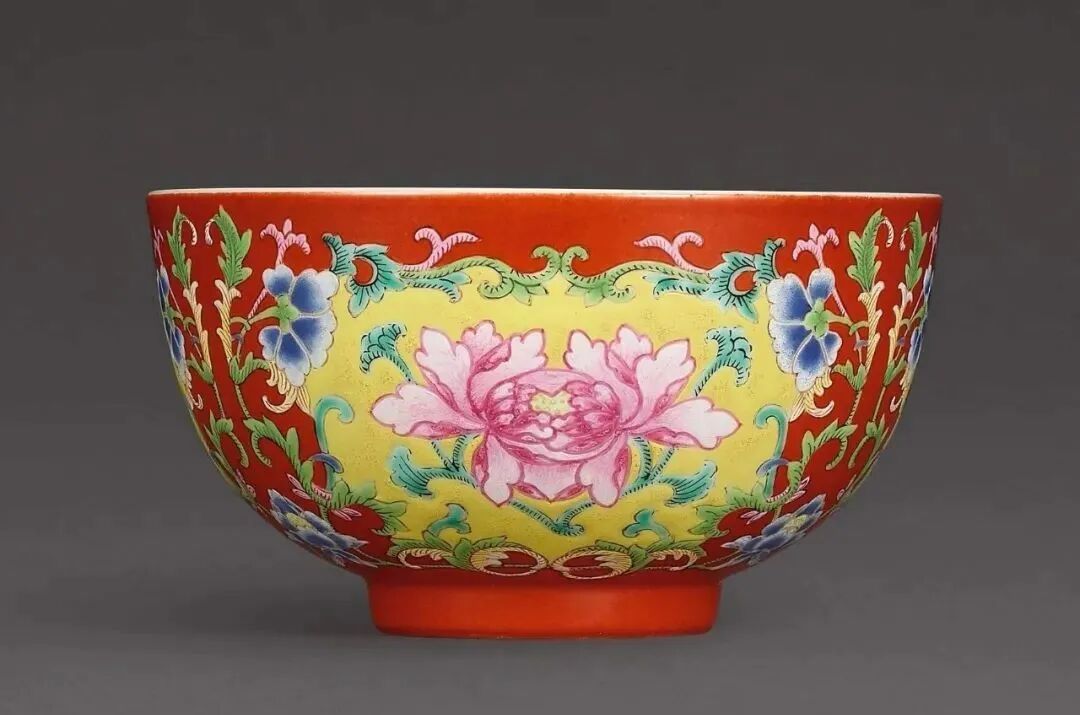 清乾隆 粉彩珊瑚红地开光牡丹纹碗(90-120万)