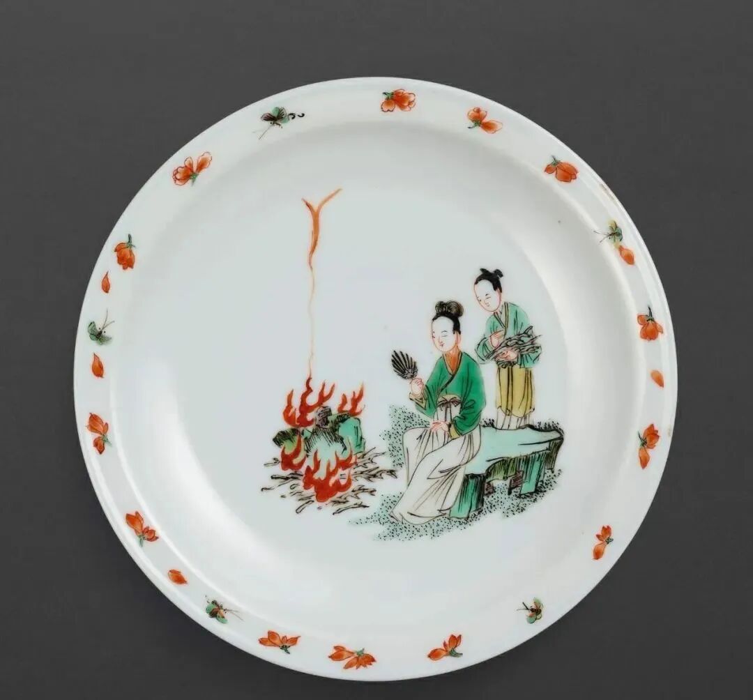 清康熙 五彩仕女薪火图折沿盘(18-25万)