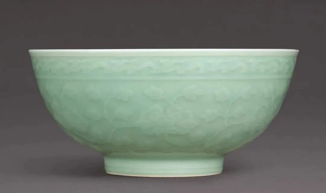 清乾隆 豆青釉刻缠枝牡丹纹大碗(28-35万)