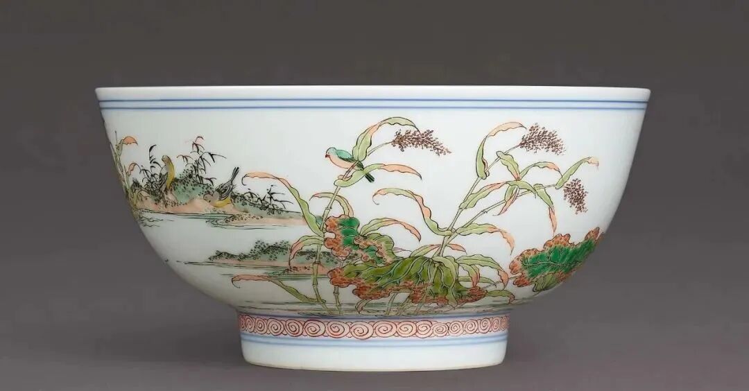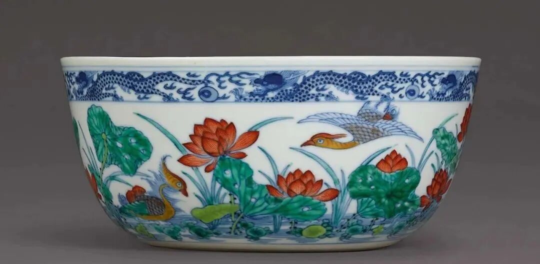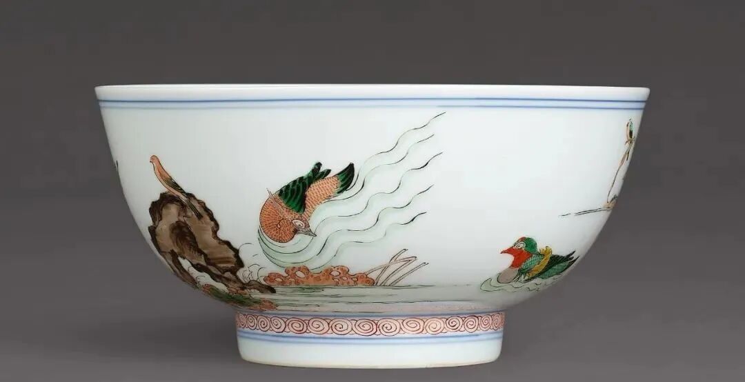 清康熙 五彩荷塘鸳鸯碗(80-120万)