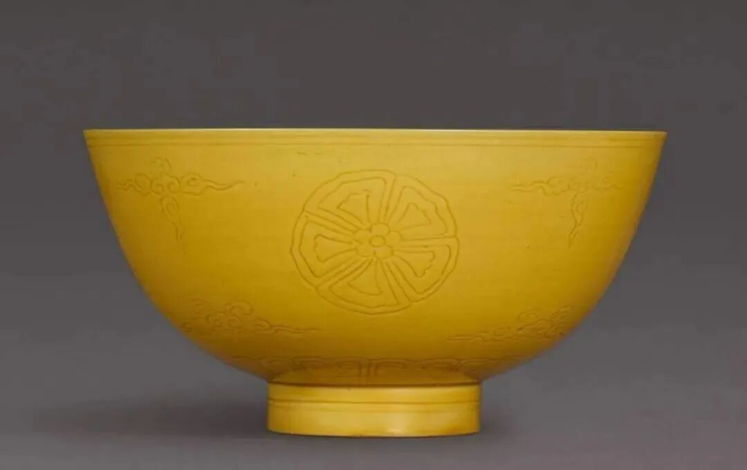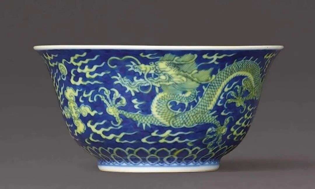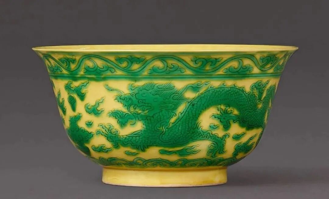 清康熙 黄地绿彩云龙戏珠纹碗(18-25万)