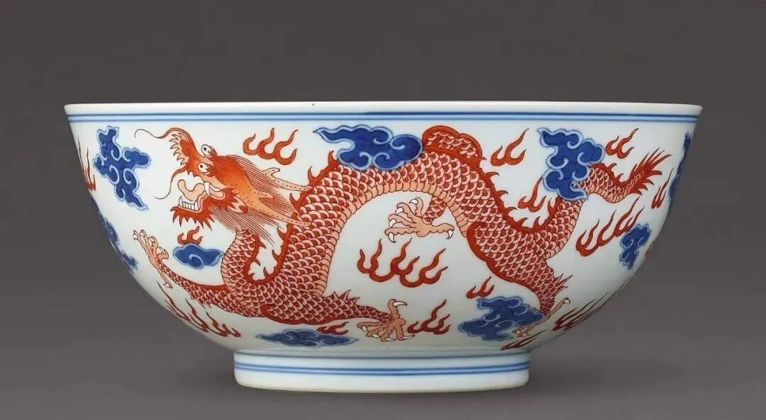 清乾隆 青花矾红彩云龙纹碗(18-25万)