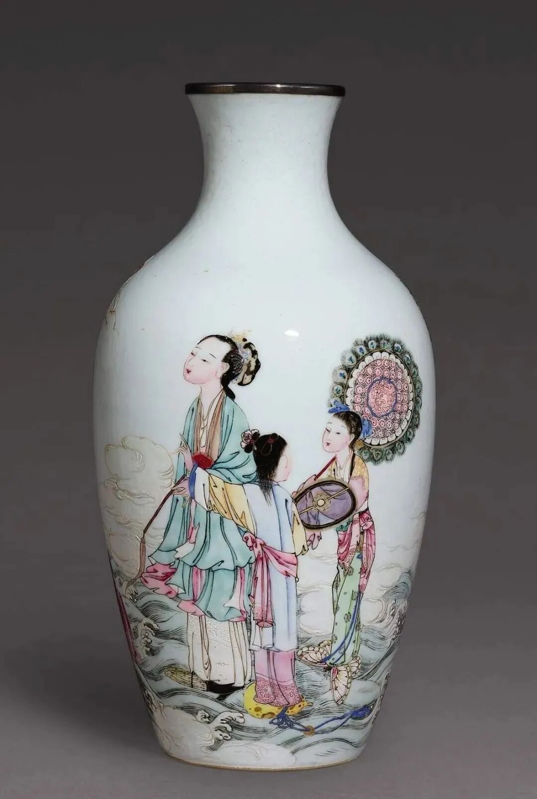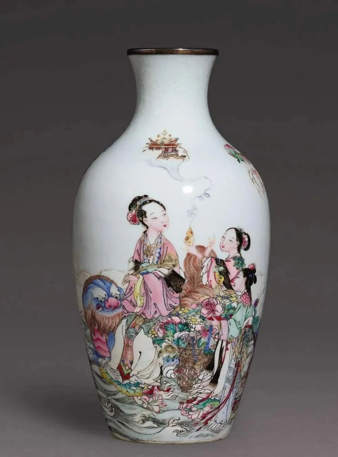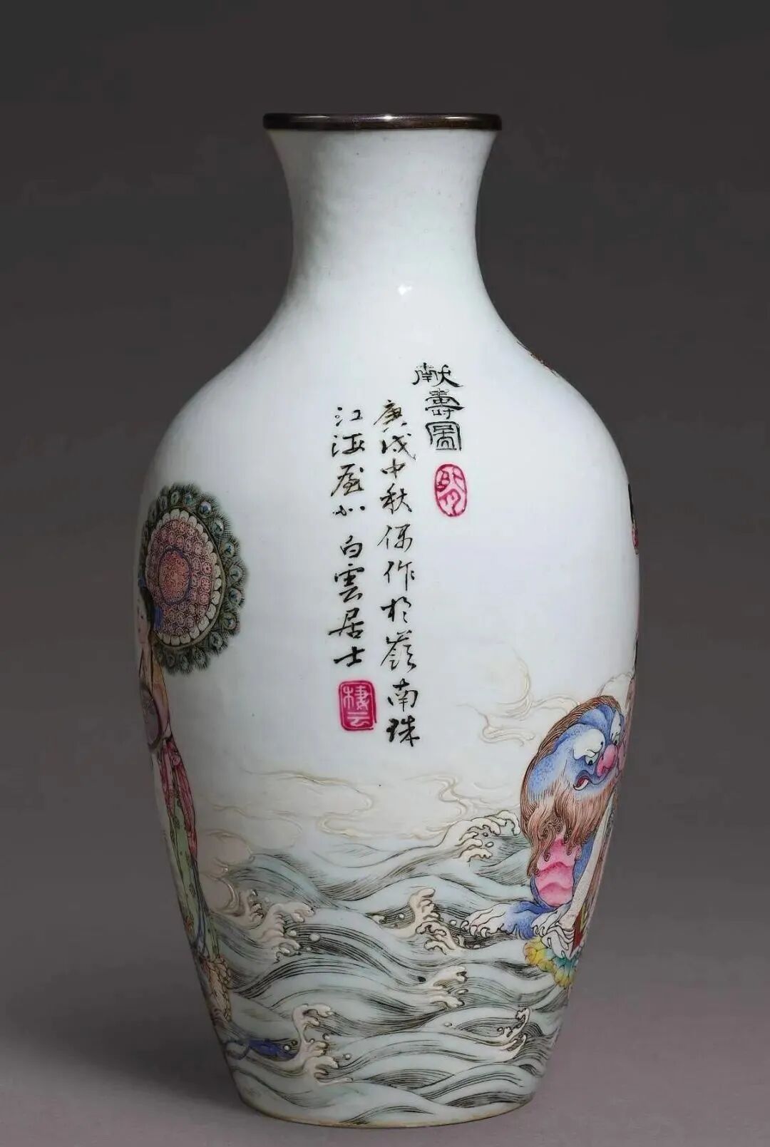 清雍正八年(1730年)传唐金堂画粉彩仙姑献寿图胆瓶(80-120万)
