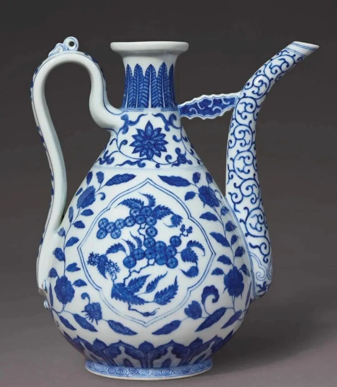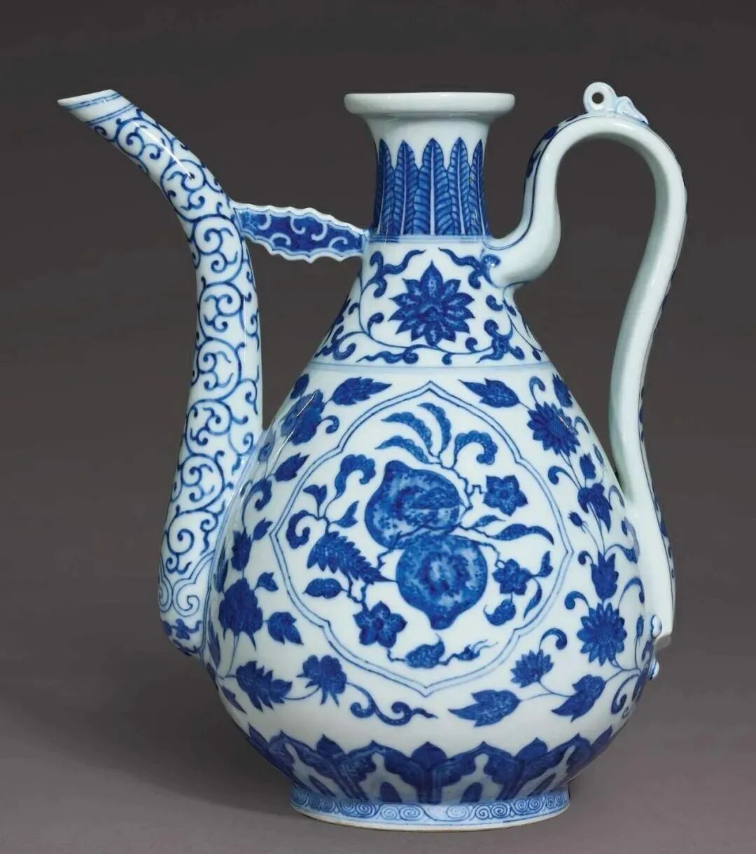 国博永乐青花桃纹执壶高清细节图(一个执壶共86个图片,耐心看)