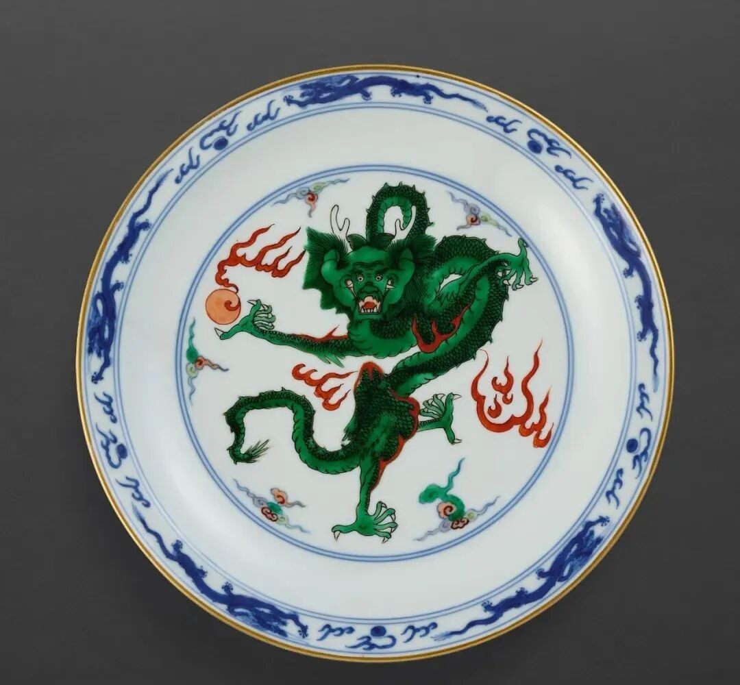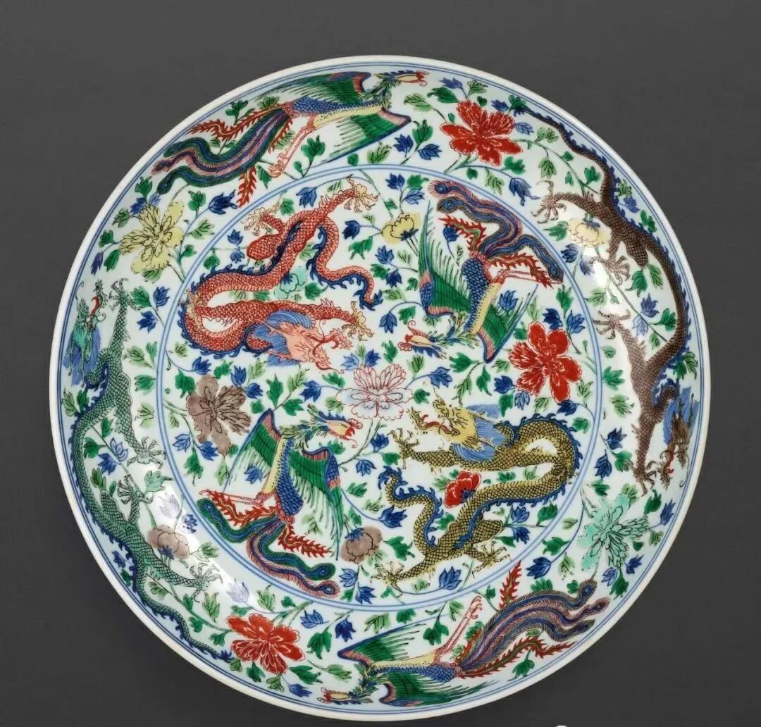 清雍正 五彩戏珠云龙纹折沿盘(80-100万)