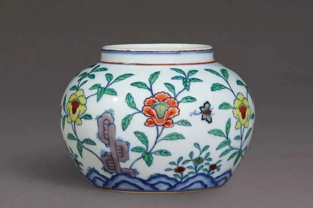 清康熙 斗彩花蝶图罐(80-100万)