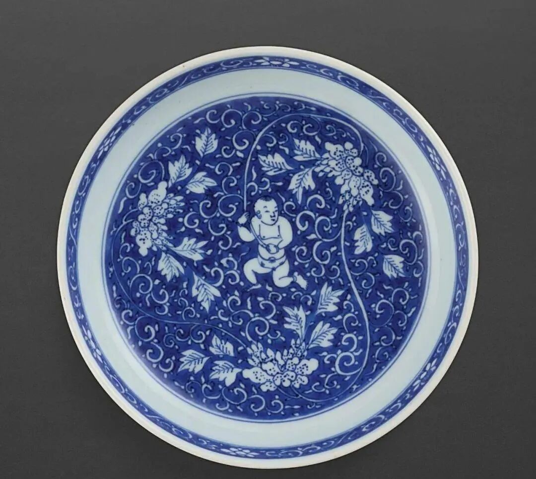 清康熙 青花连生贵子盘(10-20万)