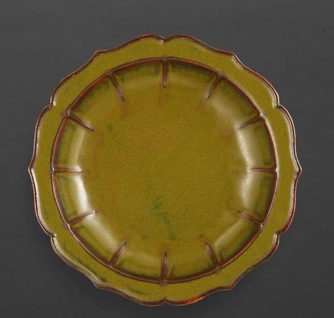 清雍正 茄皮紫釉暗花缠枝石榴纹盘一对(100-150万)