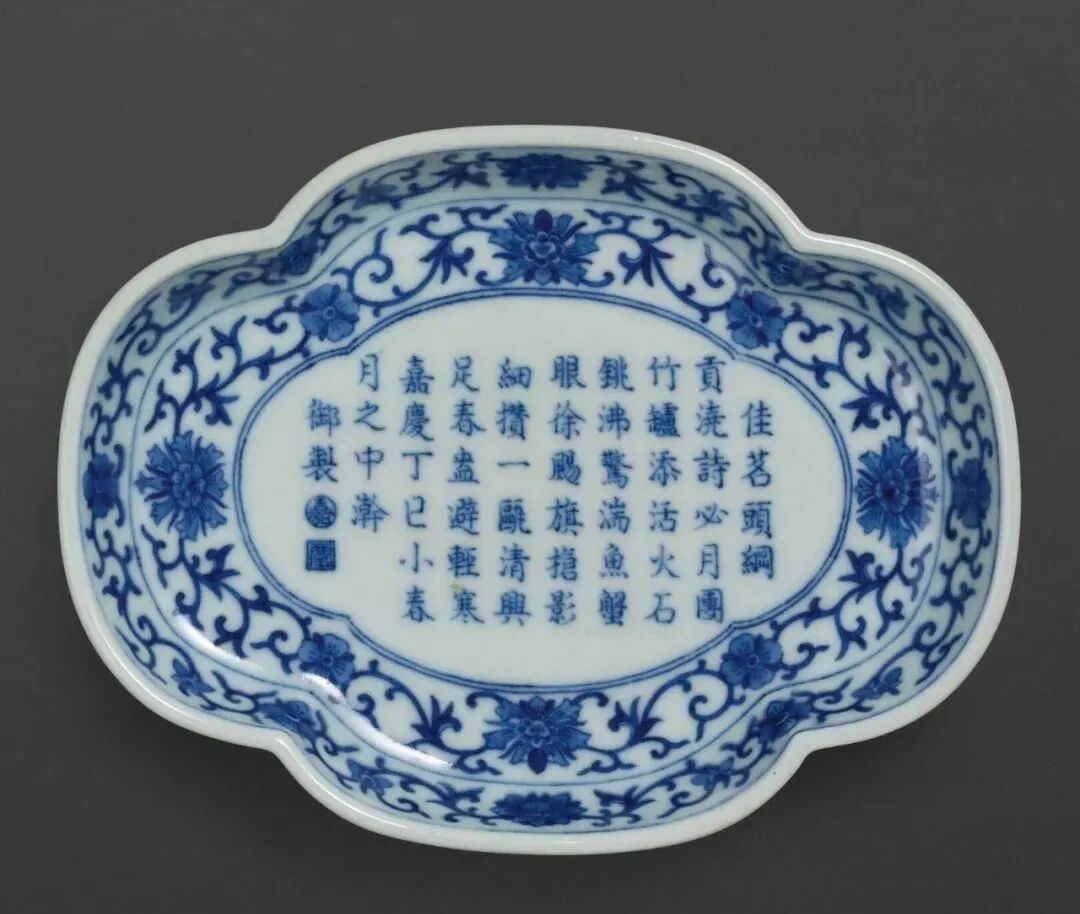 清嘉庆 青花御题诗海棠式茶盘(30-40万)