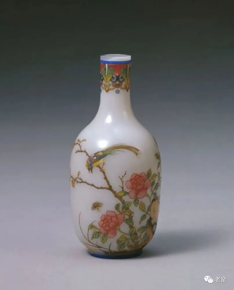 清乾隆 玻璃胎画珐琅花鸟小瓶