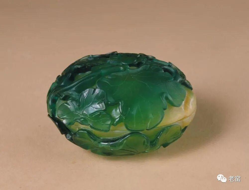 清乾隆 白地套绿色玻璃开光花卉纹瓶