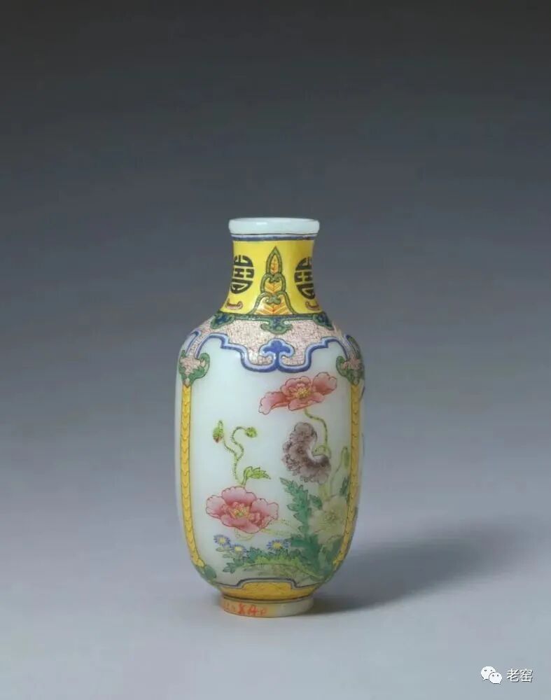 清乾隆 玻璃胎画珐琅彩花卉纹瓶