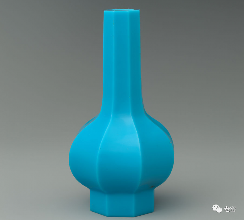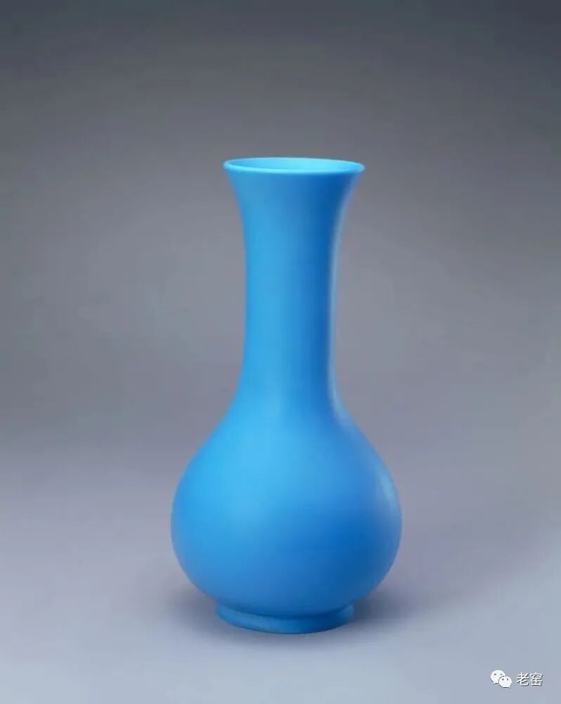 清乾隆 孔雀蓝色玻璃长颈瓶