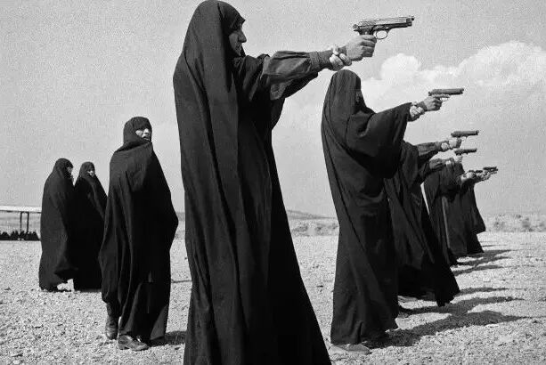1986年,伊朗德黑兰,一些妇女在学习射击。不过照片显示,她们半数持枪姿势错误。