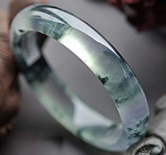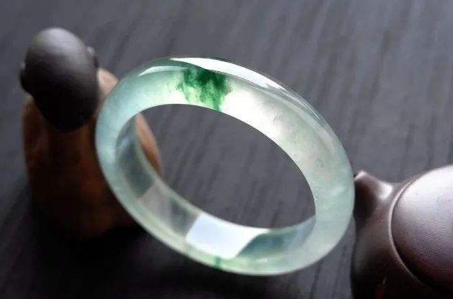 目前市场比较常见的飘花翡翠有两种:飘绿花和飘蓝花,两者有许多类似之处,但飘绿花翡翠形成的地质条件更为严苛,也比较稀少,加上翡翠一直是以绿色为贵,飘绿花翡翠的价值比同种水飘蓝花翡翠要高很多。有些飘绿花翡翠的飘花呈带状分布,而且还往同一个方向排列,有人将之称为“金丝种翡翠”。![]()