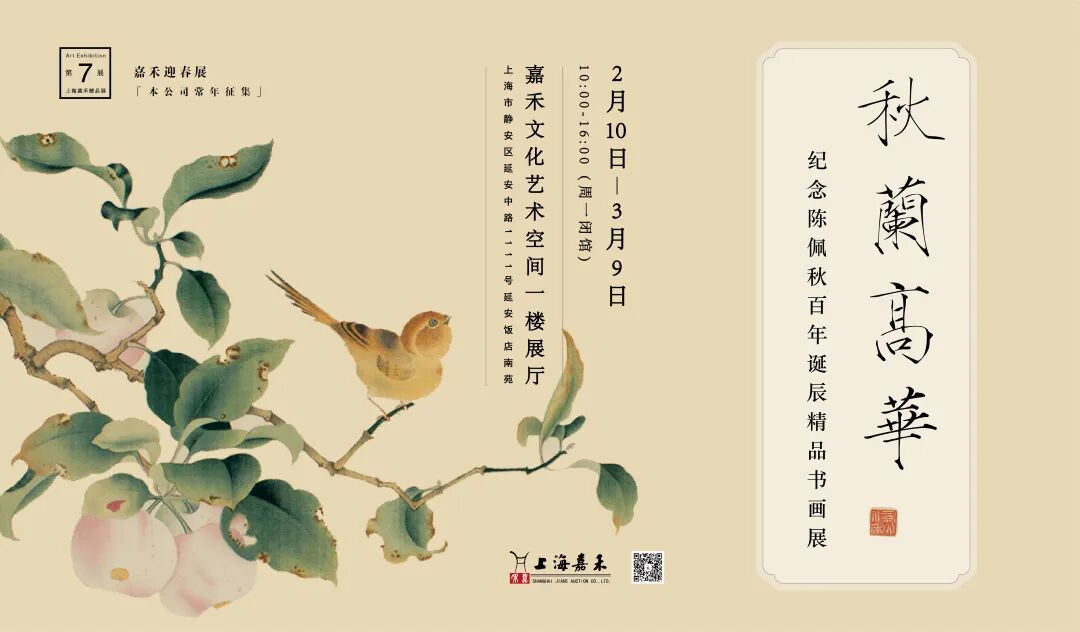 哲人其萎,艺术永存。先生之风,高华无尽。为纪念陈佩秋先生诞辰一百周年,上海嘉禾特推出“秋兰高华——纪念陈佩秋百年诞辰精品书画展”,作为本年度开年迎春首展重磅呈献,谨以是展,缅怀陈佩秋先生。
